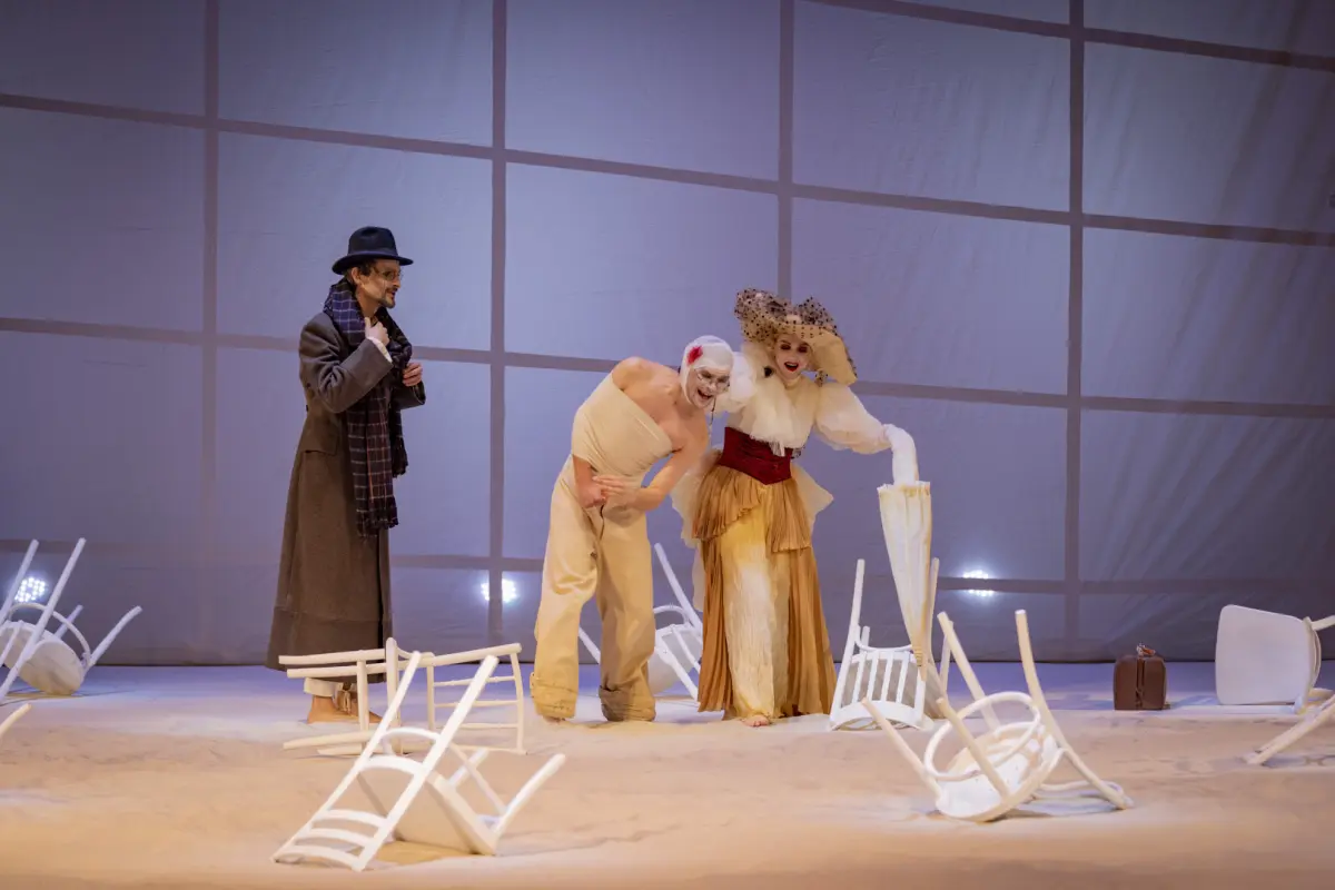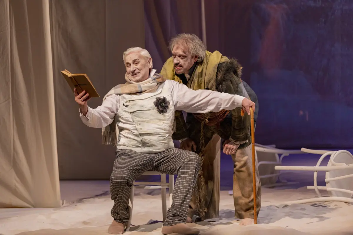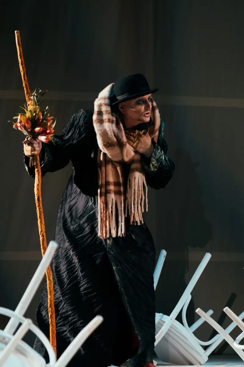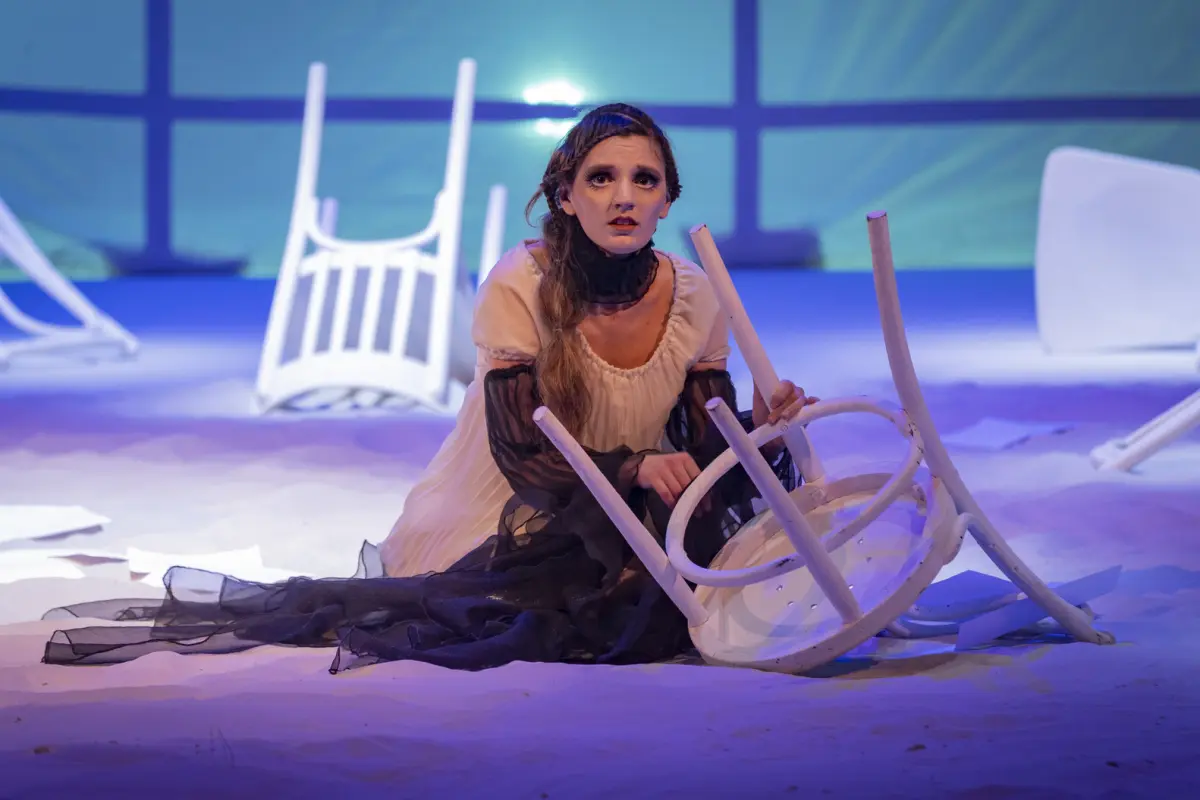 Сценография и костюмы Стеллы Веребчану весьма убедительны и создают атмосферу ирреальной красоты. Прозрачные ткани, шлейфы, шарфы подчеркивают бережную деликатность, с которой творцы постановки относятся к творчеству великого русского драматурга. Он нужен нам сегодня как близкий друг, искренний собеседник, умеющий повеселиться на собственных поминках.
