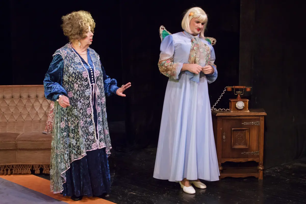 Эта легкая, веселая комедия принадлежит перу американского драматурга Кена Людвига и, начиная с 2004 года, неустанно покоряет Бродвей. Фабула построена на популярном приеме, когда мужчины переодеваются в женщин. Лео Кларк и Джек Гейбл — английские актеры-неудачники вынуждены гастролировать в далеком американском захолустье. Единственный шанс поправить свое материальное положение для них — выдать себя за племянниц богатой дамы, вознамерившейся перед смертью осчастливить бедных родственников солидным наследством. В интригу вовлечены жадный пастор, циничный доктор, сумасбродная старушка, импозантная блондинка, наивная молодая девушка и деревенский простак. Реплики героев пестрят цитатами из Шекспира, создавая причудливый и остроумный фон для уморительно смешных поступков главных героев. В пьесе есть легкий намек на знаменитый голливудский фильм «В джазе только девушки». Веселая история с прекрасной музыкой и танцами помогает зрителю, позабыв о проблемах, всецело погрузившись в жизнеутверждающий мир юмора, посмеяться от души и вернуться домой в превосходном настроении.