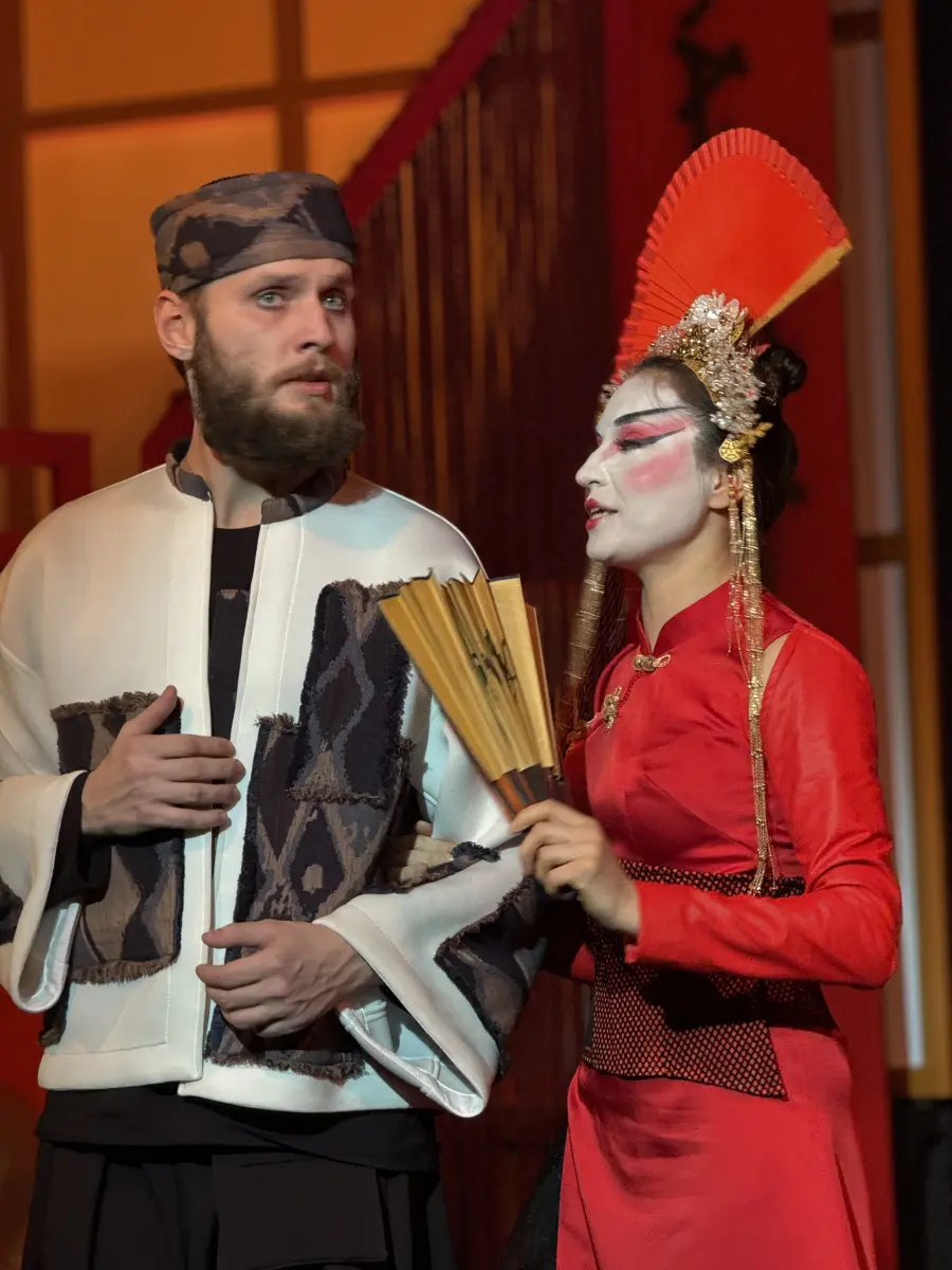 Комедия дель арте – позабытый вид итальянского народного театра. Хотя его часть, маски — ключ ко всему театральному искусству, потому что каждый актер во время спектакля надевает на себя невидимую зрителю маску. Но в случае с «Турандот» мы делаем их самыми что ни на есть видимыми. Так мы говорим — это открытый театр, нам нечего скрывать. Импровизация, ловкость, гибкость, пластика в сочетании с экспрессией масок – такой у нас спектакль.